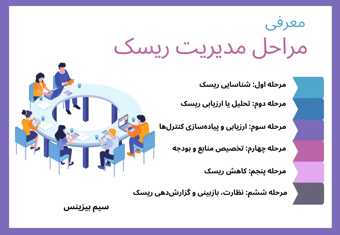 مدیریت و کنترل ریسک شامل 6 مرحله مهم است که عبارت اند از:
